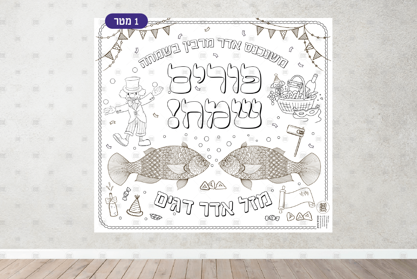 פורים שמח! מזל אדר דגים | דף צביעה ענק מטר